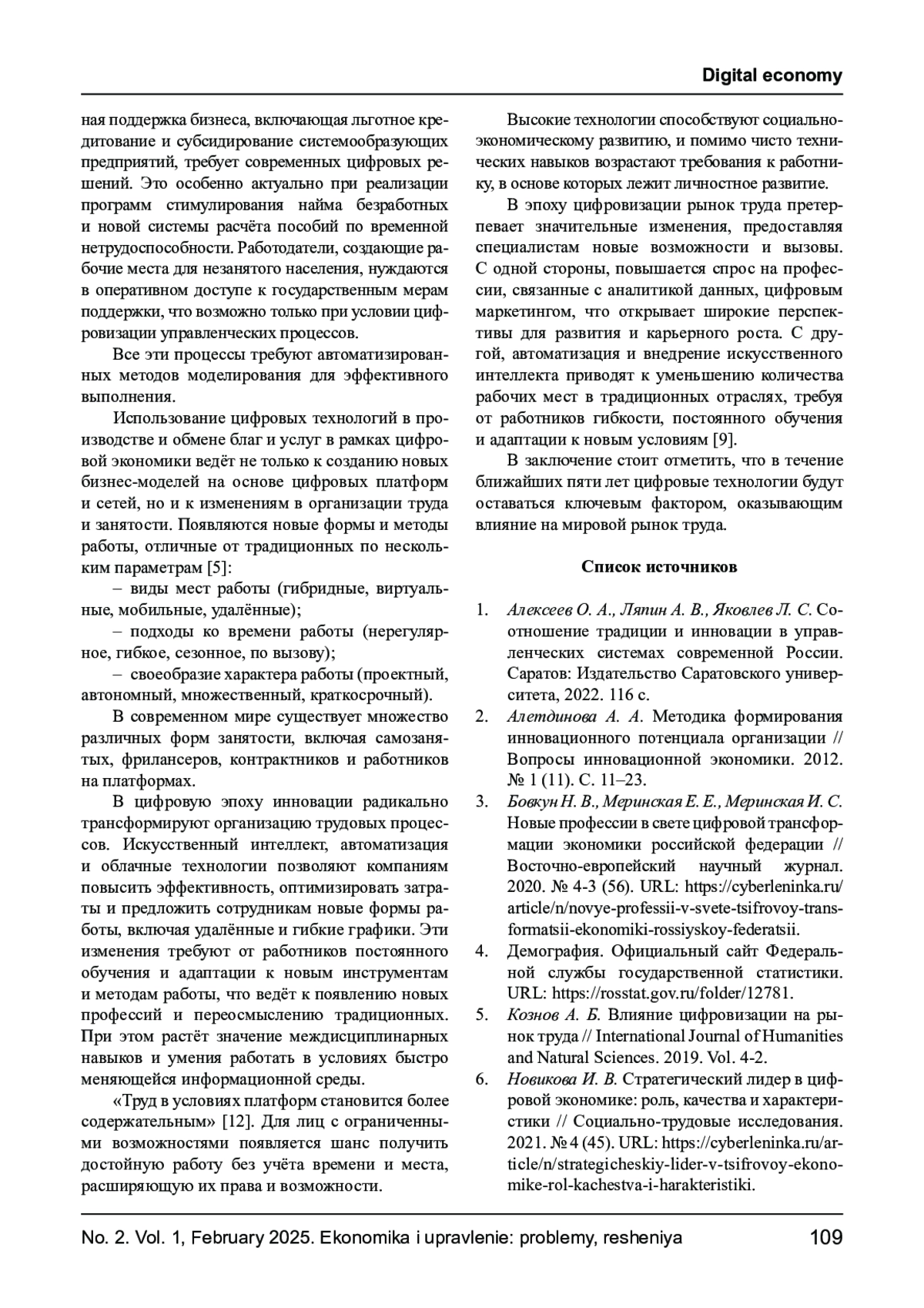 5. Кознов А. Б. Влияние цифровизации на рынок труда // International Journal of Humanities and Natural Sciences. 2019. Vol. 4-2.