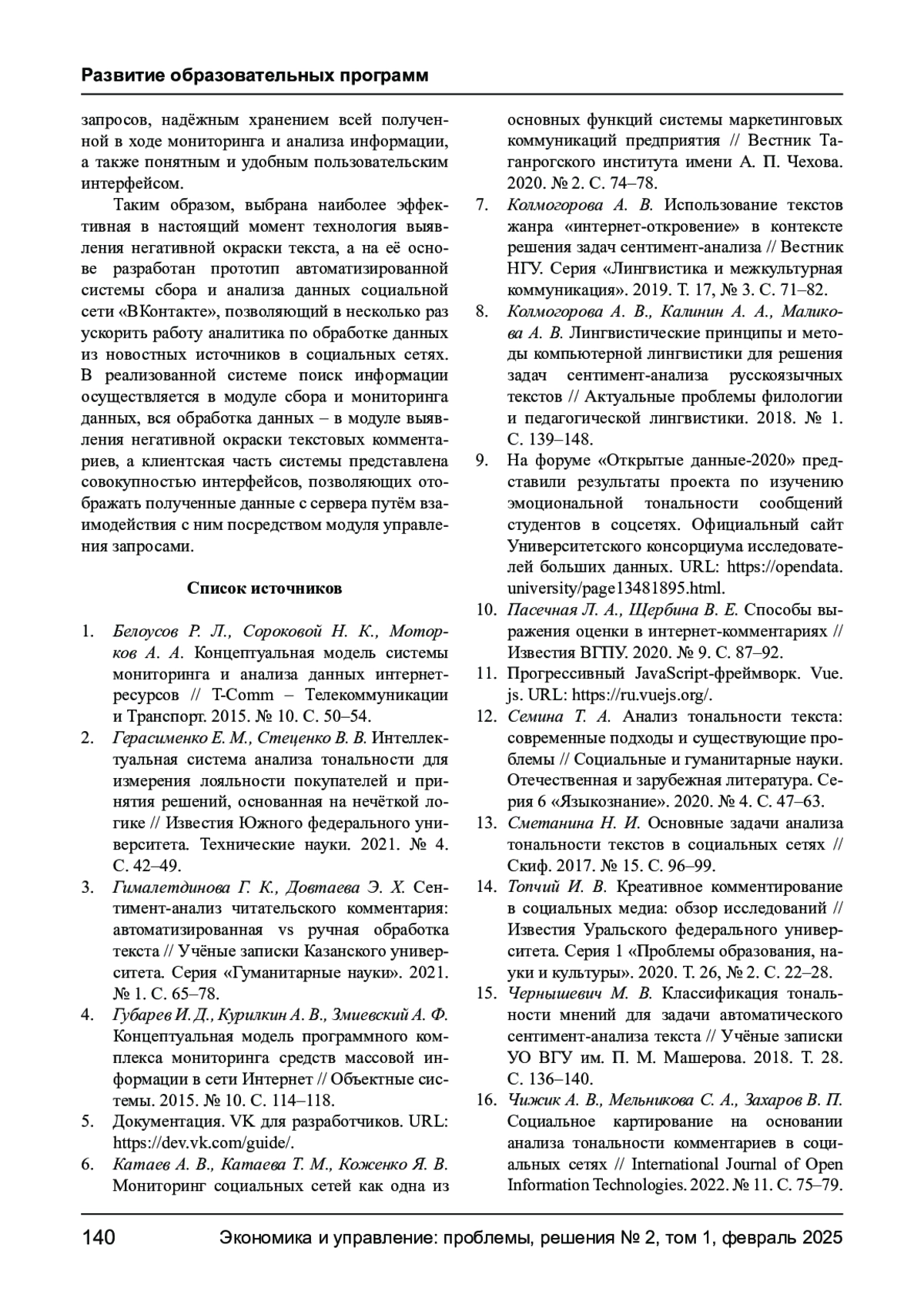 13. Сметанина Н. И. Основные задачи анализа тональности текстов в социальных сетях // Скиф. 2017. № 15. С. 96-99. EDN: YLLXDV