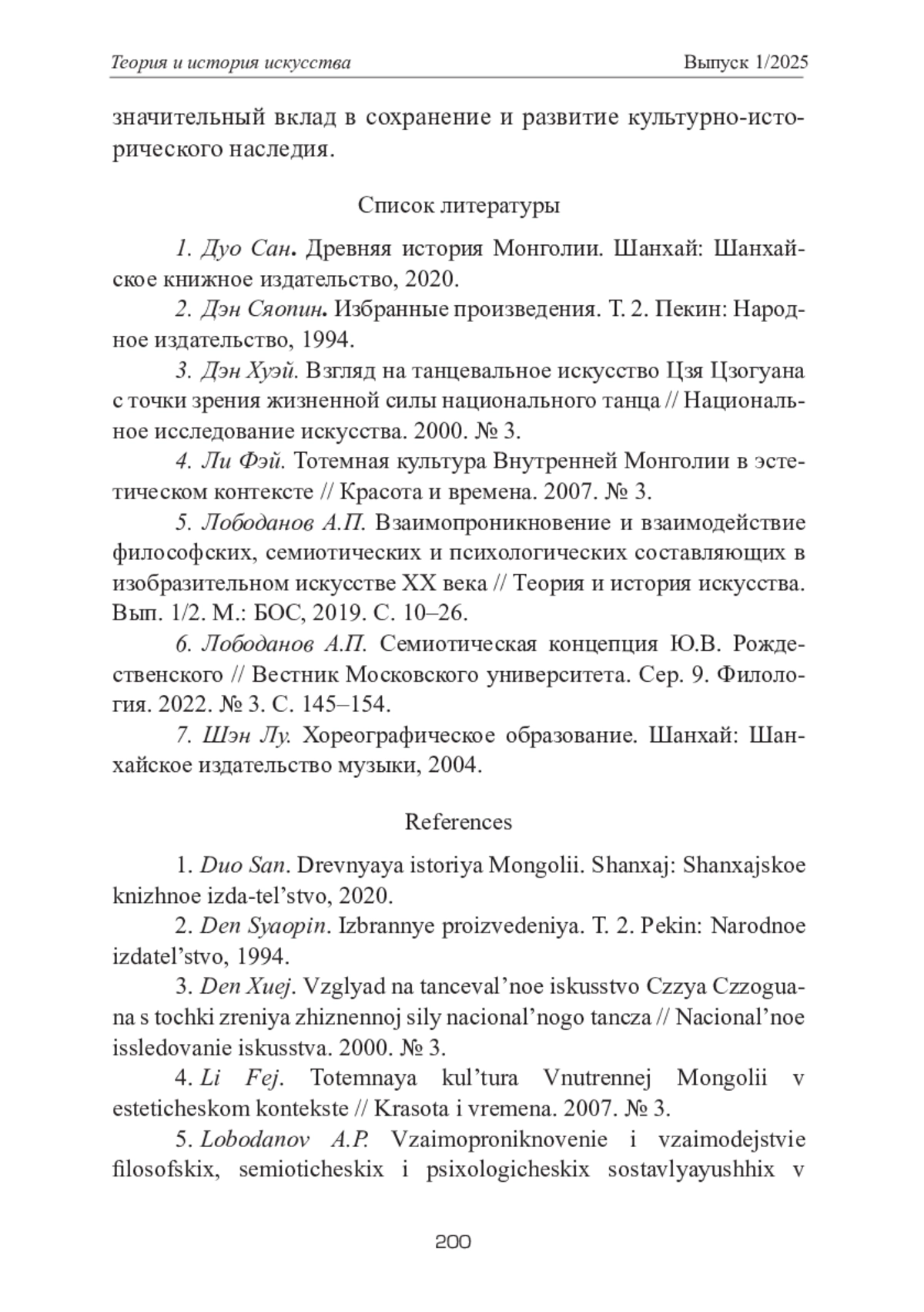 5. Лободанов А.П. Взаимопроникновение и взаимодействие философских, семиотических и психологических составляющих в изобразительном искусстве XX века // Теория и история искусства. Вып. 1/2. М.: БОС, 2019. С. 10-26. EDN: KPNKCE