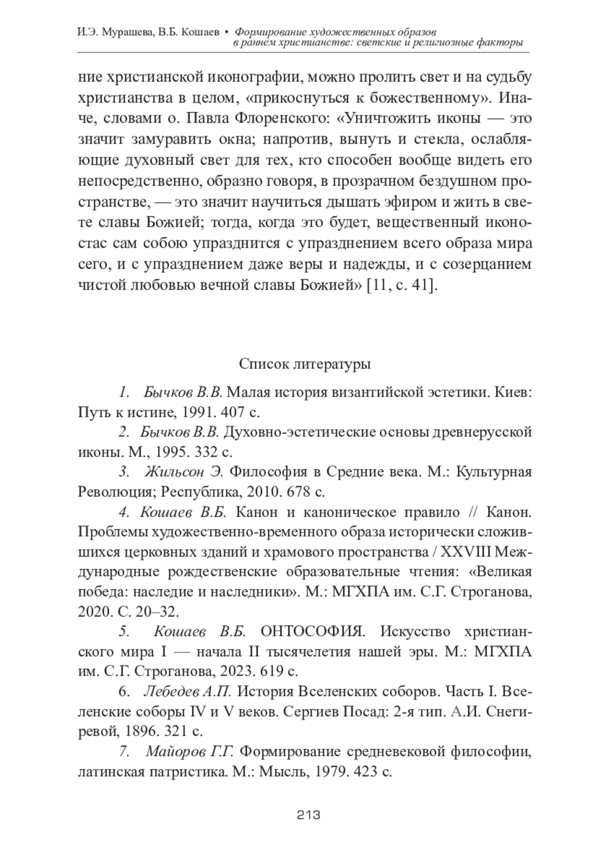 5. Кошаев В.Б. ОНТОСОФИЯ. Искусство христианского мира I - начала II тысячелетия нашей эры. М.: МГХПА им. С.Г. Строганова, 2023. 619 с.