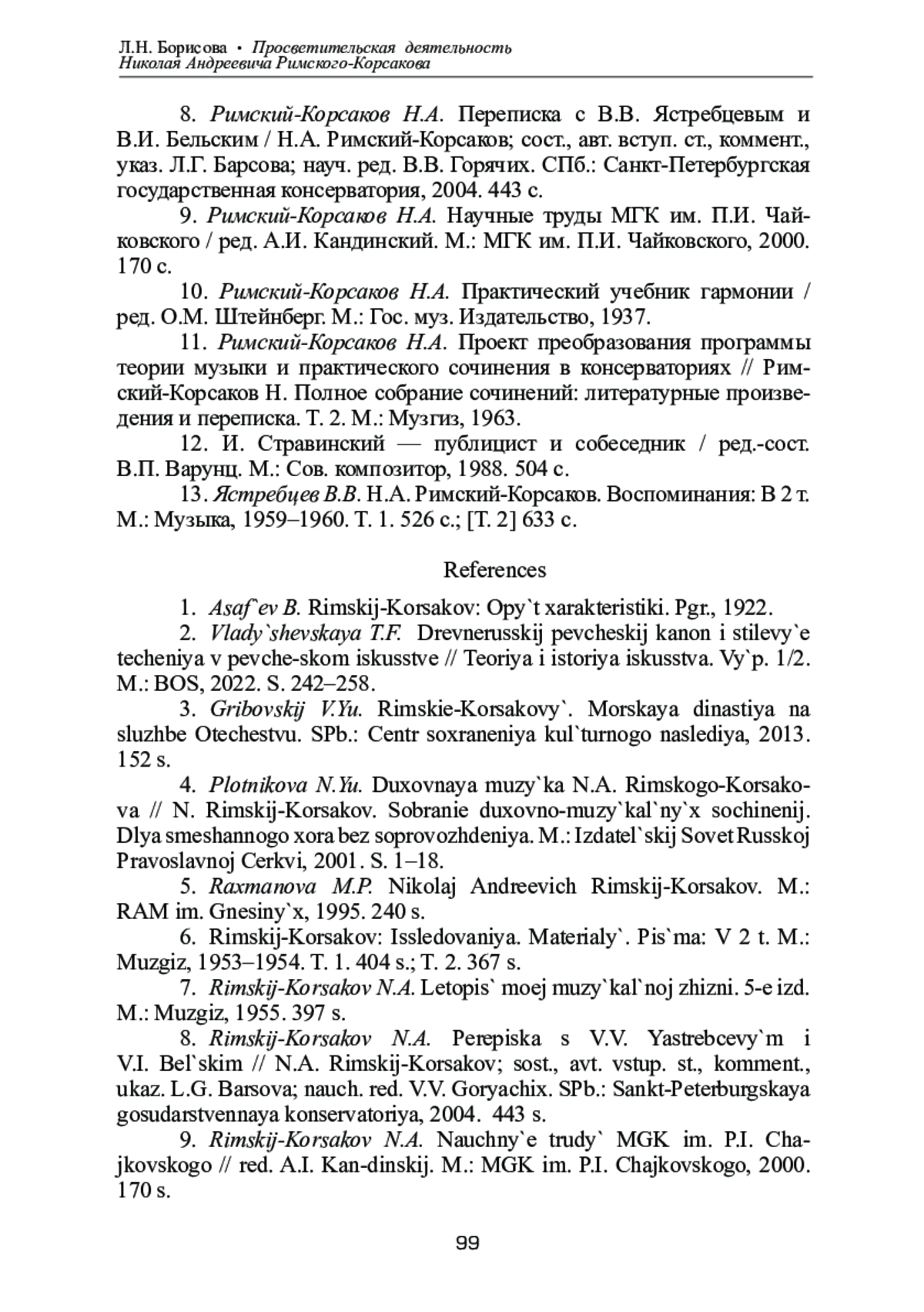 БОРИСОВА Л. Н. ПРОСВЕТИТЕЛЬСКАЯ ДЕЯТЕЛЬНОСТЬ НИКОЛАЯ АНДРЕЕВИЧА РИМСКОГО-КОРСАКОВА // ТЕОРИЯ И ИСТОРИЯ ИСКУССТВА. 2025. № 2