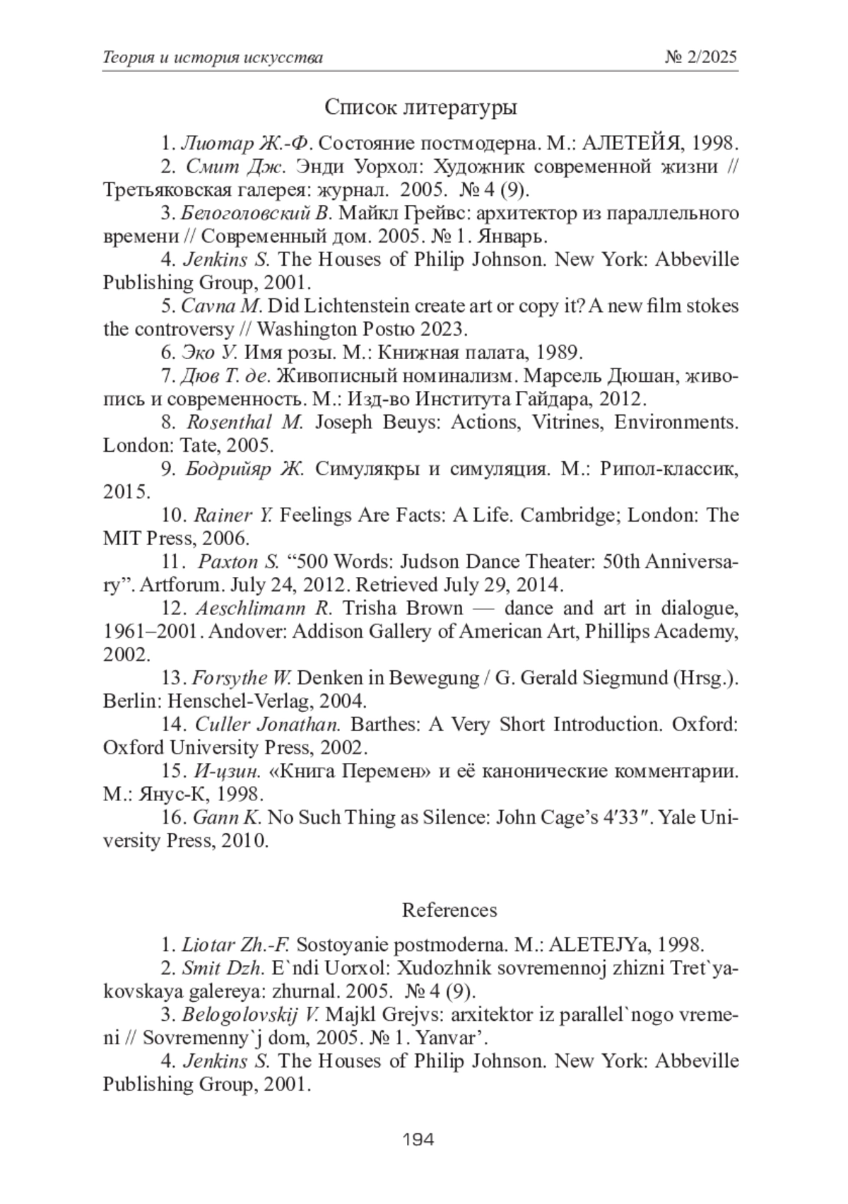 2. Смит Дж. Энди Уорхол: Художник современной жизни // Третьяковская галерея: журнал. 2005. № 4 (9).