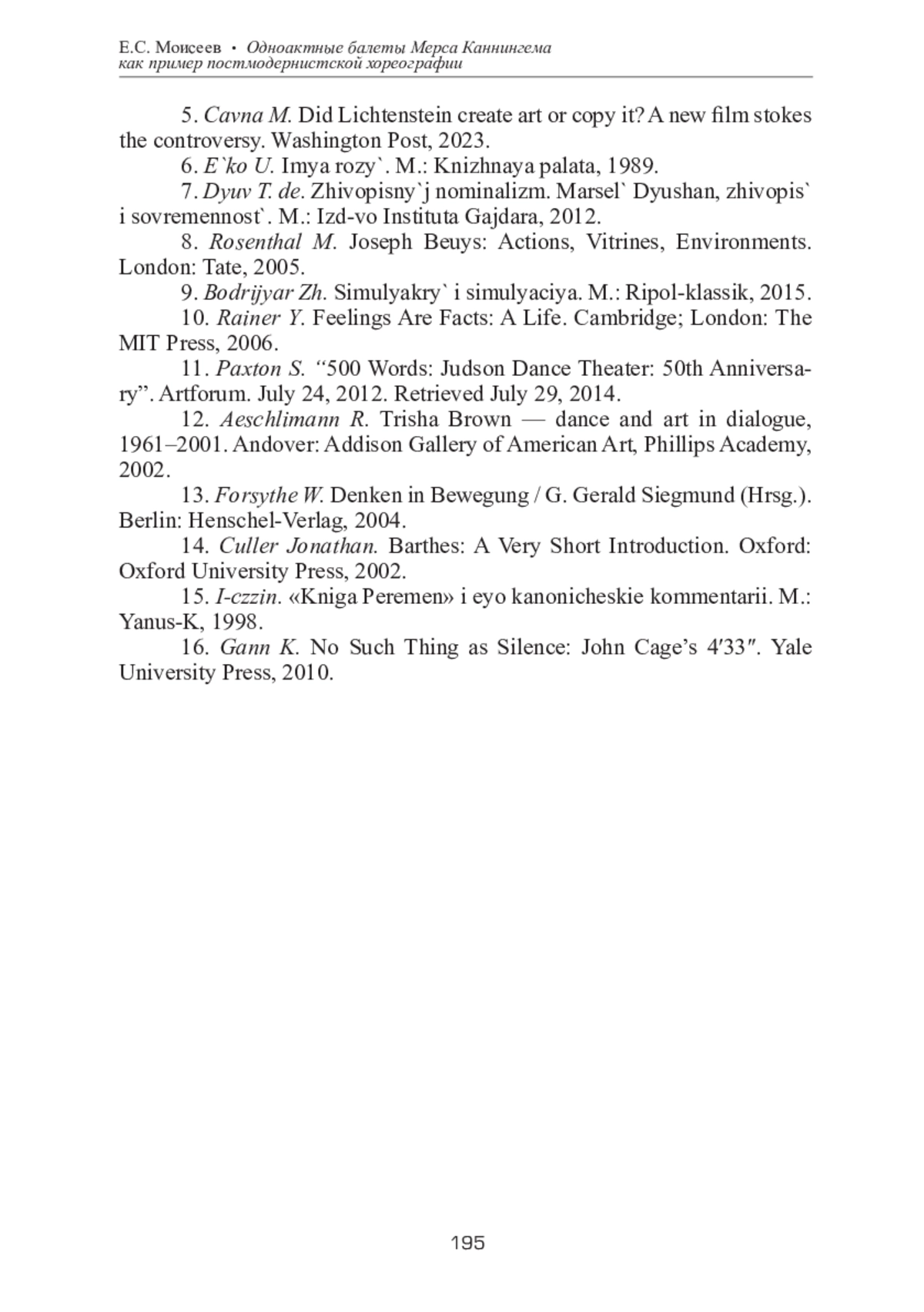 12. Aeschlimann R. Trisha Brown - dance and art in dialogue, 1961-2001. Andover: Addison Gallery of American Art, Phillips Academy, 2002.