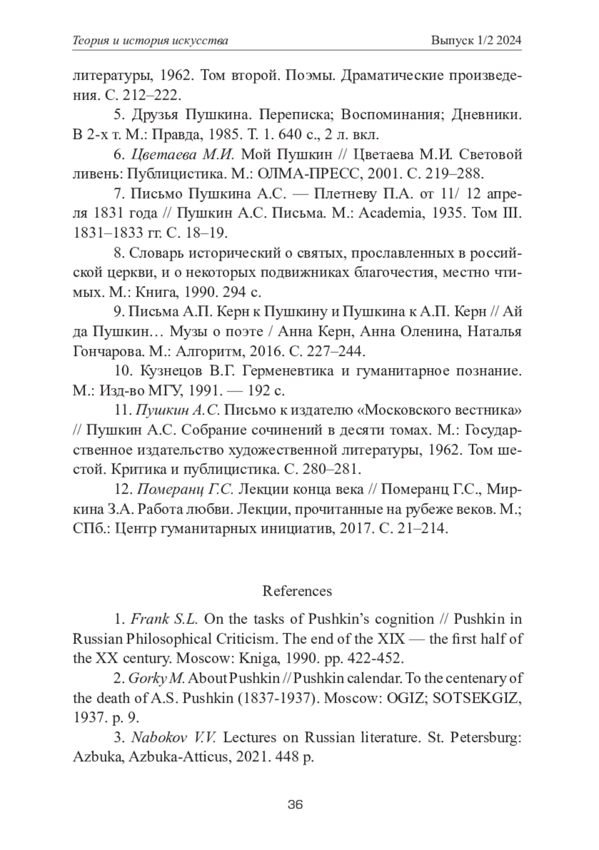 1. Франк С.Л. О задачах познания Пушкина // Пушкин в русской философской критике. Конец XIX - первая половина ХХ в. М.: Книга, 1990. С. 422-452.