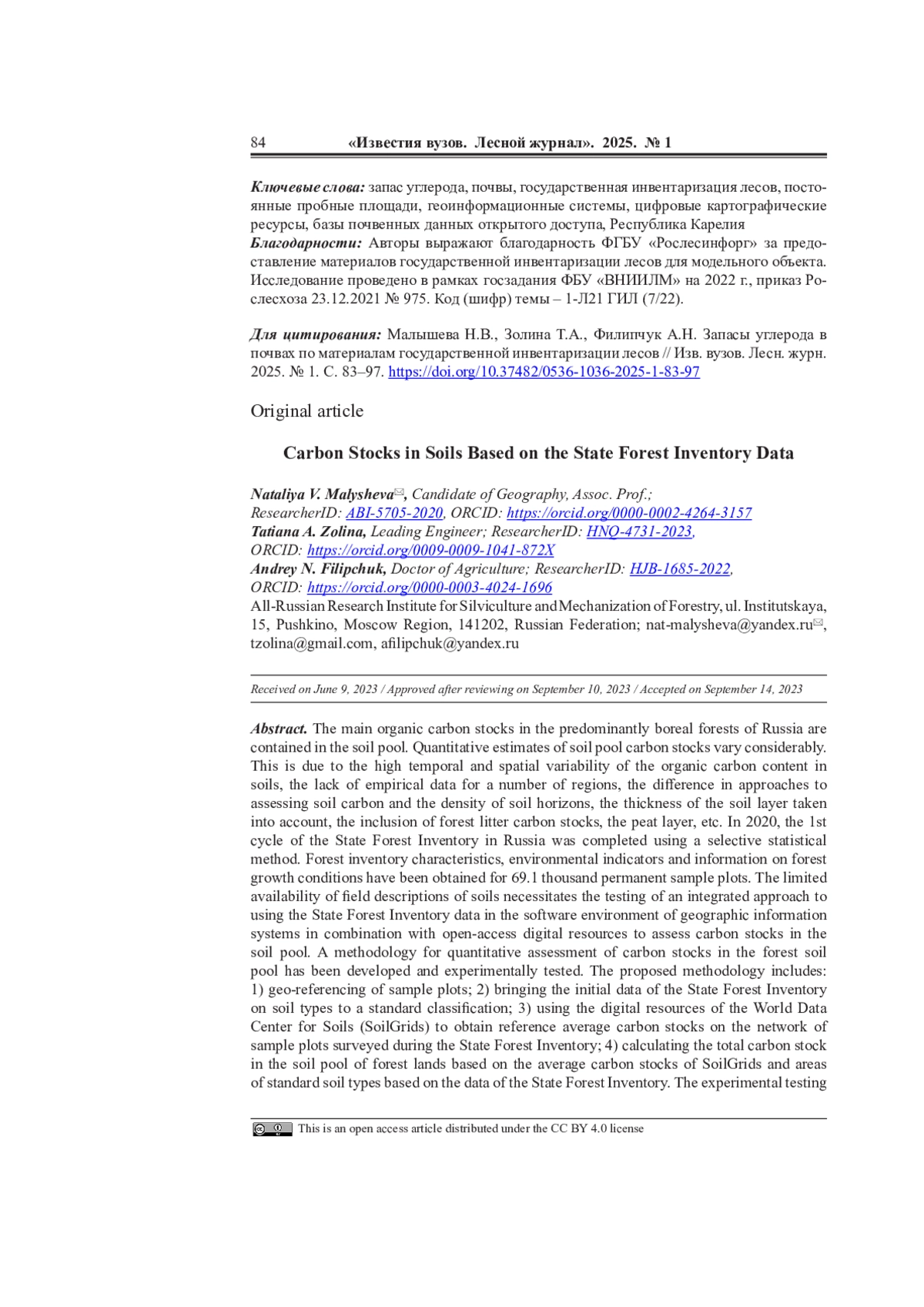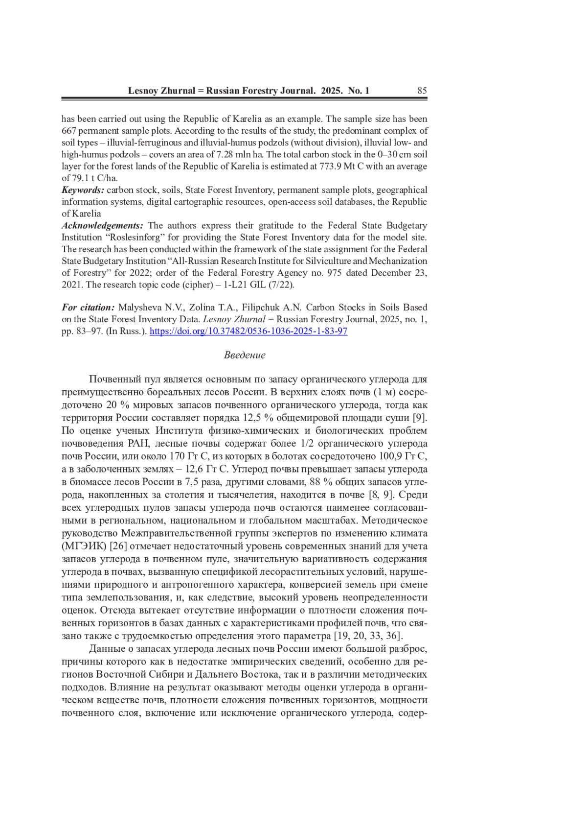 22. Честных О.В., Грабовский В.И., Замолодчиков Д.Г. Углерод почв лесных районов Европейско-Уральской части России // Вопросы лесной науки. 2020. Т. 3, No 2. 15 с. EDN: WHEJHD
