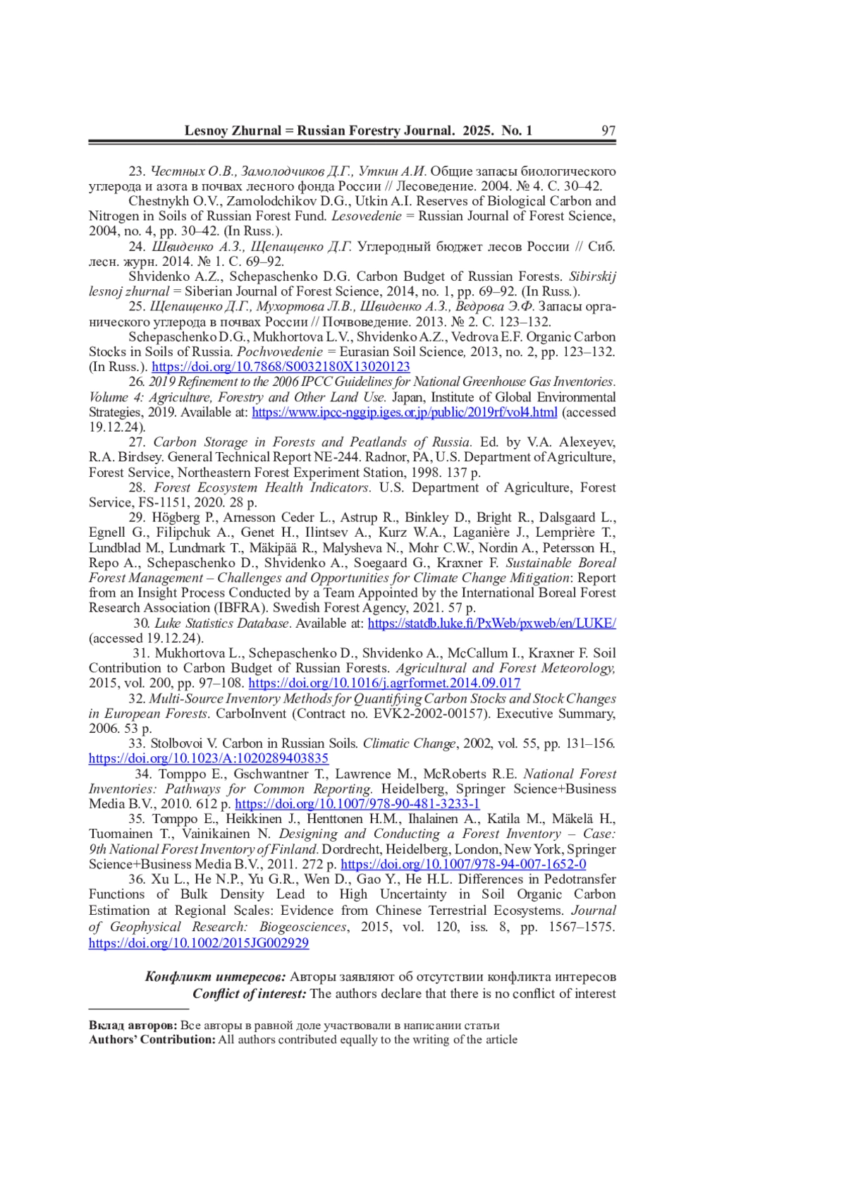 24. Швиденко А.З., Щепащенко Д.Г. Углеродный бюджет лесов России // Сиб. лесн. журн. 2014. No 1. С. 69-92. EDN: SLRSSH