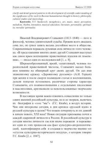 Ключевые фразы: нв станкевич, метафизика, искусство, музыка, ВОСПРИЯТИЕ МУЗЫКИ, мелодизм, РИТМ, интонация, музыкальное просвещение, ЛИТЕРАТУРА, личность, духовность, нравственность