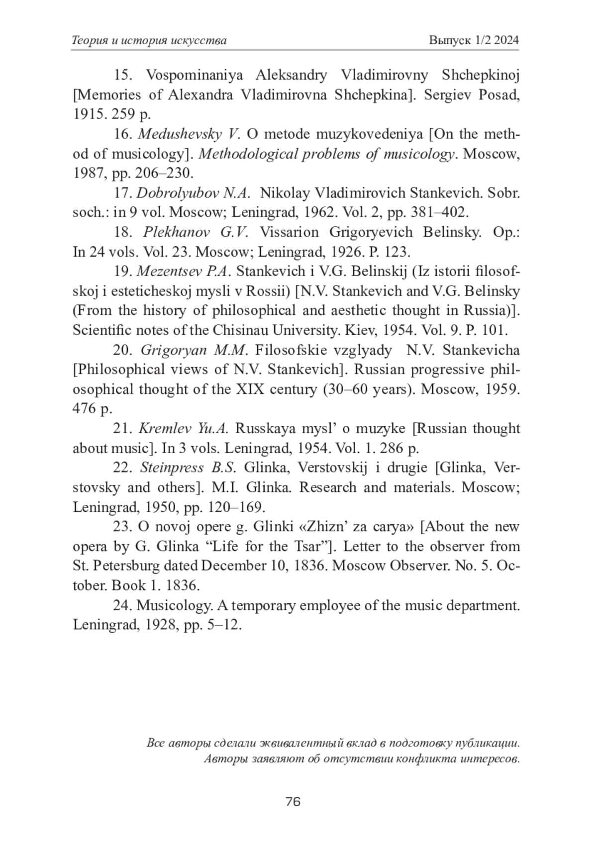 ВОРОНИНА Н. И., СИРОТИНА И. Л. НИКОЛАЙ ВЛАДИМИРОВИЧ СТАНКЕВИЧ - "СГУСТОК КУЛЬТУРНО-ИСТОРИЧЕСКОГО ВОЗДУХА" СВОЕГО ВРЕМЕНИ // ТЕОРИЯ И ИСТОРИЯ ИСКУССТВА. 2024. № 1-2