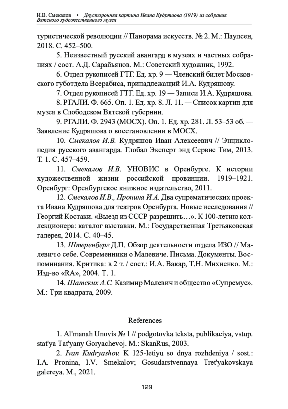 10. Смекалов И.В. Кудряшов Иван Алексеевич // Энциклопедия русского авангарда. Глобал Эксперт энд Сервис Тим, 2013. Т. 1. С. 457-459.