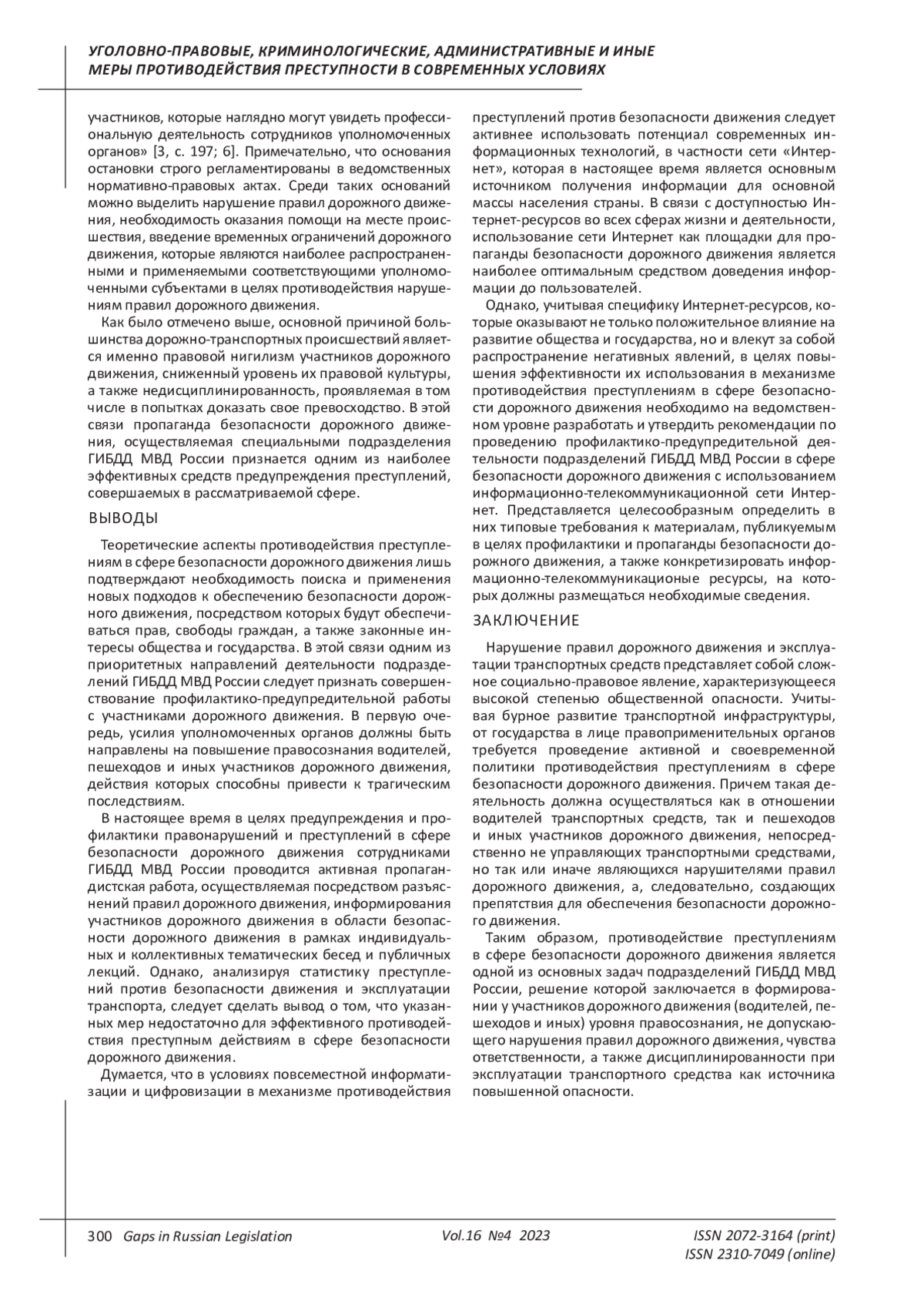 Kodzokova L. A. Problems of law enforcement of some administrative procedures by the traffic police of the Ministry of Internal Affairs of Russia // Gaps in Russian legislation. 2022. Vol. 15. No. 3. EDN: UMCAFM