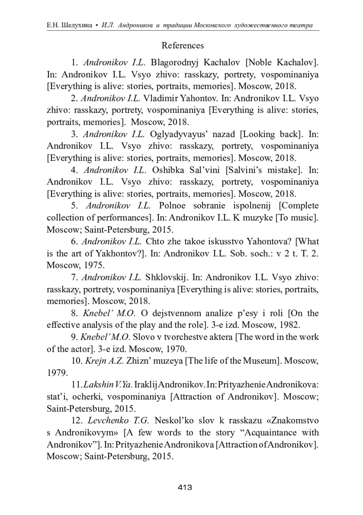 12. Левченко Т.Г. Несколько слов к рассказу “Знакомство с Андрониковым” // Притяжение Андроникова - М.; СПб., 2015.