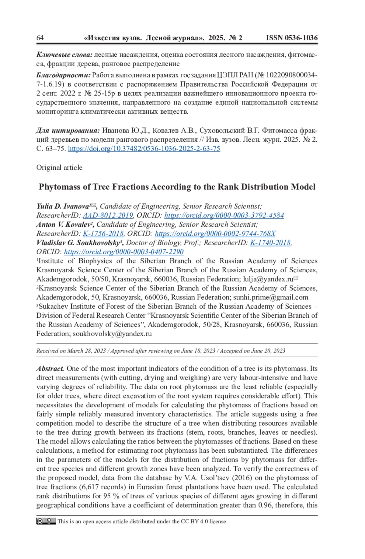 17. Суховольский В.Г., Иванова Ю.Д. Оценка чистой первичной продукции лесных насаждений с использованием модели распределения фитомассы по фракциям // Лесоведение. 2013. No 5. С. 20-28. EDN: RDUBAD
