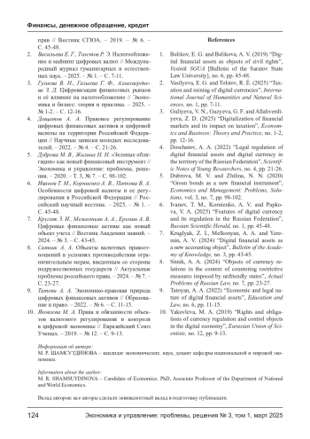 6. Иванов Т. М., Корниенко А. В., Папкова В. А. Особенности цифровой валюты и ее регулирования в Российской Федерации // Российский научный вестник. - 2025. - № 1. - С. 45-48. EDN: YBUBCE