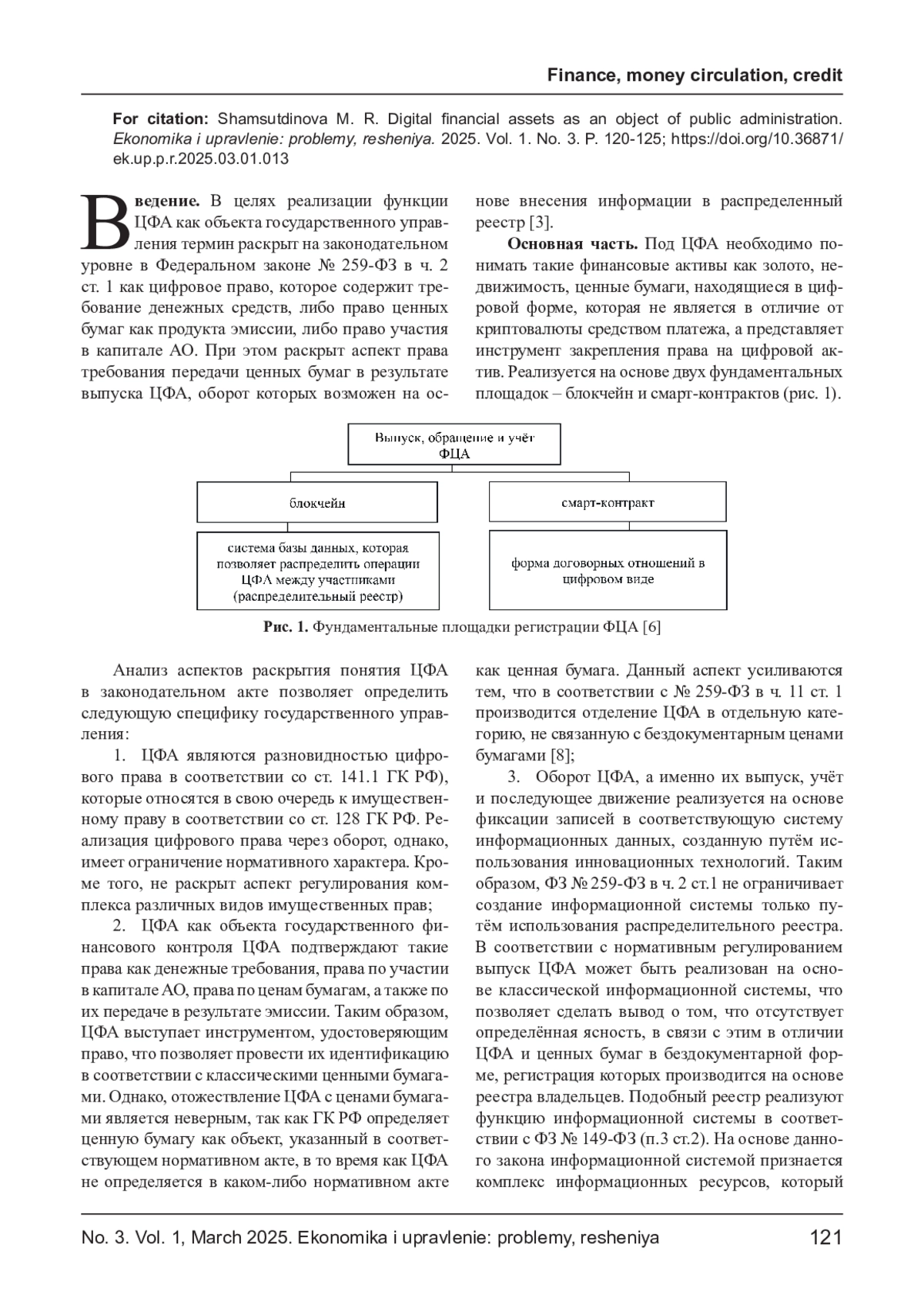 Современная финансовая среда на сегодняшний день характеризуется процессами внедрения и использования инновационных финансовых продуктов, в частности ориентированных на оборот цифровых финансовых активов (далее по тексту ЦФА). Государственное управление при появлении и инновационных финансовых продуктов ставит задачу определения той системы законодательного регулирования, которая позволила бы использовать правовой механизм для его управления. При этом возможны несколько вариантов правовых решений, ориентированных на закрепление законодательных вопросов по отношению к инновационному активу. В первую очередь возможен вариант формирования такого правового механизма, который уже используется по отношению к аналогичным объектам правового регулирования. Во вторую очередь, может быть разработан специфический механизм правового регулирования, который будет ориентирован на особенности ЦФА.