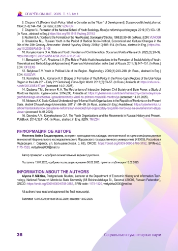13. Корнишина Г. А., Комаров К. В. Этапы становления молодежной политики финно-угорских регионов Урало-Поволжья в конце ХХ - начале ХХI в. // Финно-угорский мир. 2013. № 3. С. 53-57. URL: https://csfu.mrsu.ru/arh/2013/3/53-57.pdf (дата обращения: 14.01.2025).