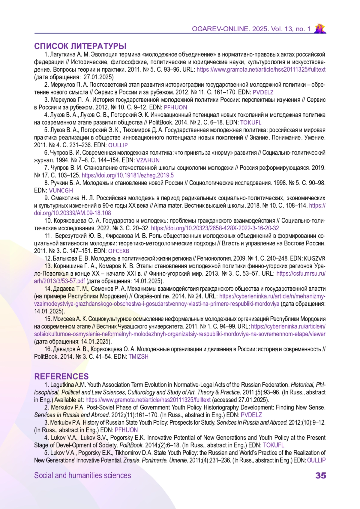 3. Меркулов П. А. История государственной молодежной политики России: перспективы изучения // Сервис в России и за рубежом. 2012. № 10. С. 9-12.