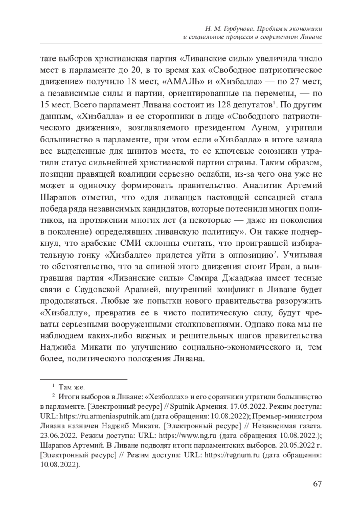 ГОРБУНОВА Н. М. ПРОБЛЕМЫ ЭКОНОМИКИ И СОЦИАЛЬНЫЕ ПРОЦЕССЫ В СОВРЕМЕННОМ ЛИВАНЕ // НЕСТАБИЛЬНОСТЬ ГЕОСТРАТЕГИЧЕСКОГО ПРОСТРАНСТВА НА БЛИЖНЕМ, СРЕДНЕМ И ДАЛЬНЕМ ВОСТОКЕ: АКТУАЛЬНЫЕ ПРОБЛЕМЫ. 2022. № 9