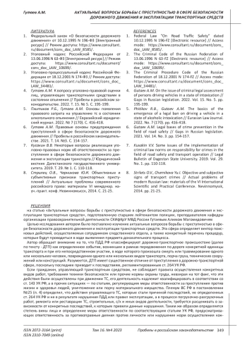 6. Гутаев А.М. Правовые основы предупреждения преступлений в сфере безопасности дорожного движения // Пробелы в российском законодательстве. 2021. Т. 14. №3. С. 154-157. EDN: OAWJZU
