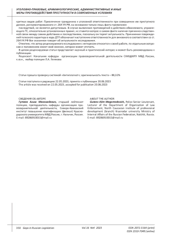 Gutaev A.M. On the issue of criminal legal assessment of persons driving vehicles in a state of intoxication // Gaps in Russian legislation. 2022. Vol. 15. No. 5. pp. 195-199. EDN: KUIEGJ