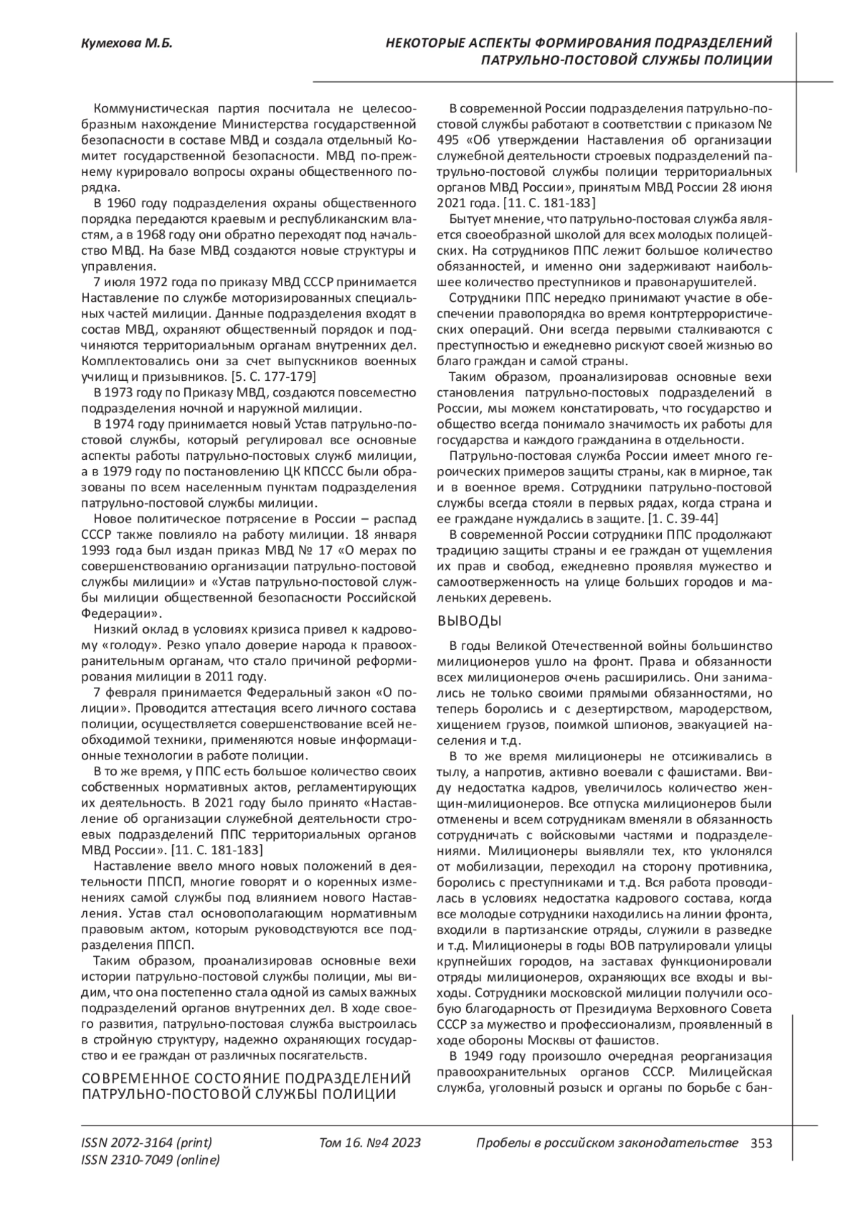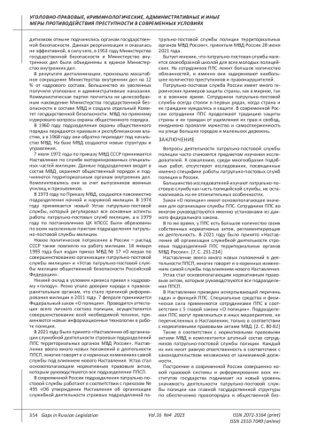 4. Каримова Г.Ю. Исторический аспект становления патрульно-патрульно-постовой службы полиции в России //Modern Science.2022. № 2. С. 200-203.