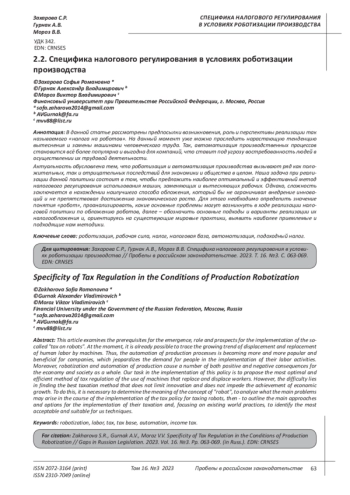 Kamaraeva E. Ya., Maksimov N. A., Pyanova M. V. On the tax consequences of robotization National interests: priorities and security. - 2017. - P. 1609-1613.
