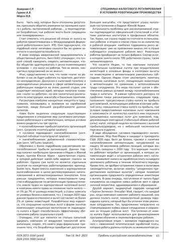 4. Камараева Е. Я., Максимов Н. А., Пьянова М. В. О налоговых последствиях роботизации Национальные интересы: приоритеты и безопасность. - 2017. - С. 1609-1613.