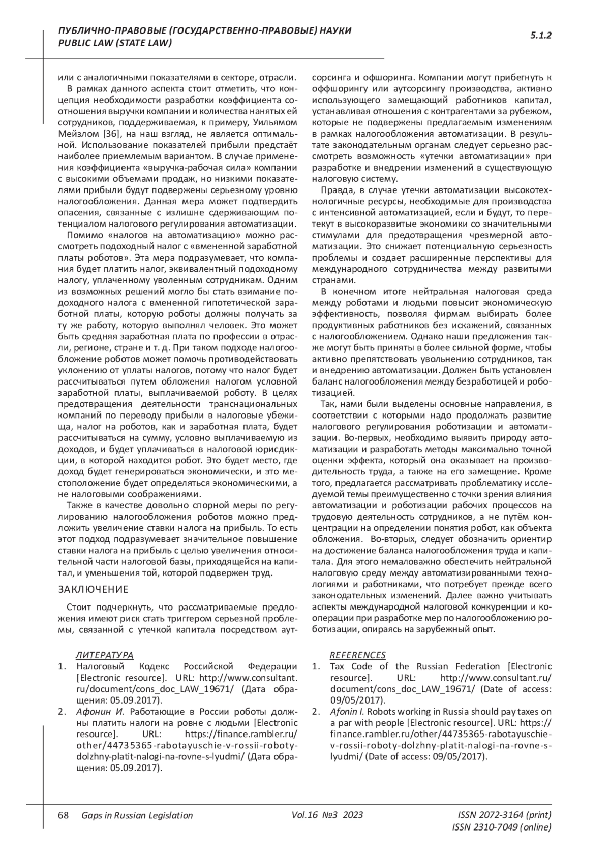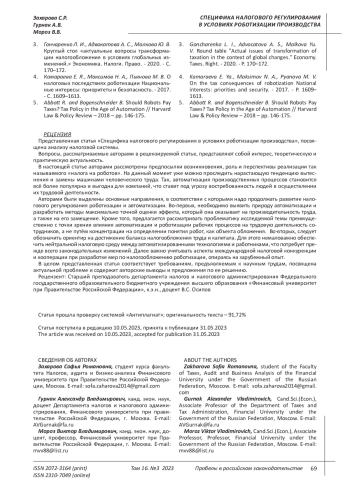5. Abbott R. and Bogenschneider B. Should Robots Pay Taxes? Tax Policy in the Age of Automation // Harvard Law & Policy Review - 2018 - pp. 146-175.