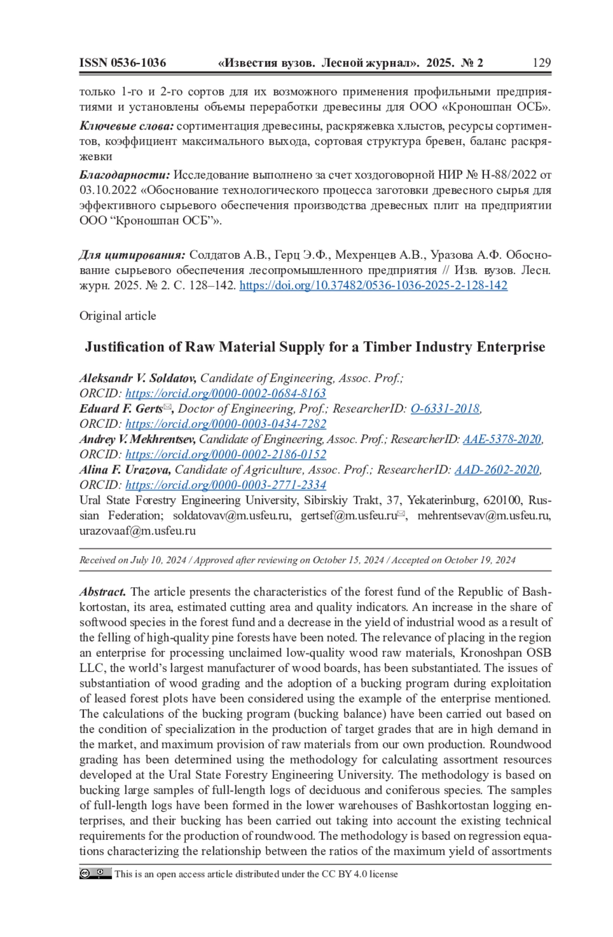 Zagidullin D.A., Gerts E.F. Prospects for Harvesting Wood LLC “Kronoshpan OSB”. Scientific Сreativity of Youth - for the Forestry Complex of Russia: Materials of the XIX All-Russian (National) Scientific and Technical Conference of Students and Postgraduate Students. Ekaterinburg, Ural State Forestry Engineering University, 2023, pp. 129-132. (In Russ.). EDN: KLHECA