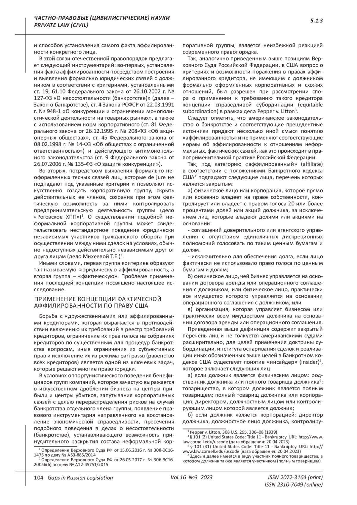 4. Егоров А.В. Влияние аффилированности на банкротство. Цивилистика, 2021, № 2. С.67. EDN: NUIIPY