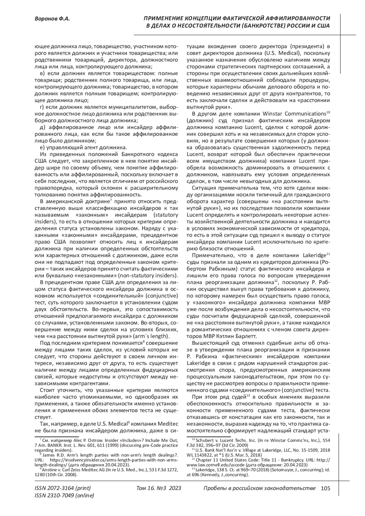Egorov A.V. Influence of affiliation on bankruptcy. Civilistics, 2021, no. 2. С.67.
