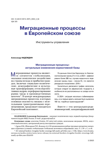 В статье рассмотрены современные миграционные процессы в Европейском союзе с акцентом на механизмы их регулирования. Интерес представляют инновационные технологии, которые востребованы как для обеспечения безопасности границ и пресечения нелегальных перемещений, так и для контроля за предоставлением убежища и интеграции мигрантов на примере Германии, которая обладает определённым опытом и практическими наработками в данной сфере.
