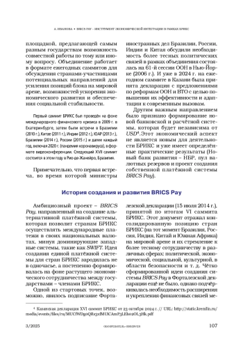 В статье анализируются предпосылки создания BRICS Pay и политические аспекты её функционирования. Особое внимание уделяется снижению зависимости от доллара США и западной финансовой системы, укреплению политического влияния объединения БРИКС на мировой арене, формированию альтернативного финансового пространства.