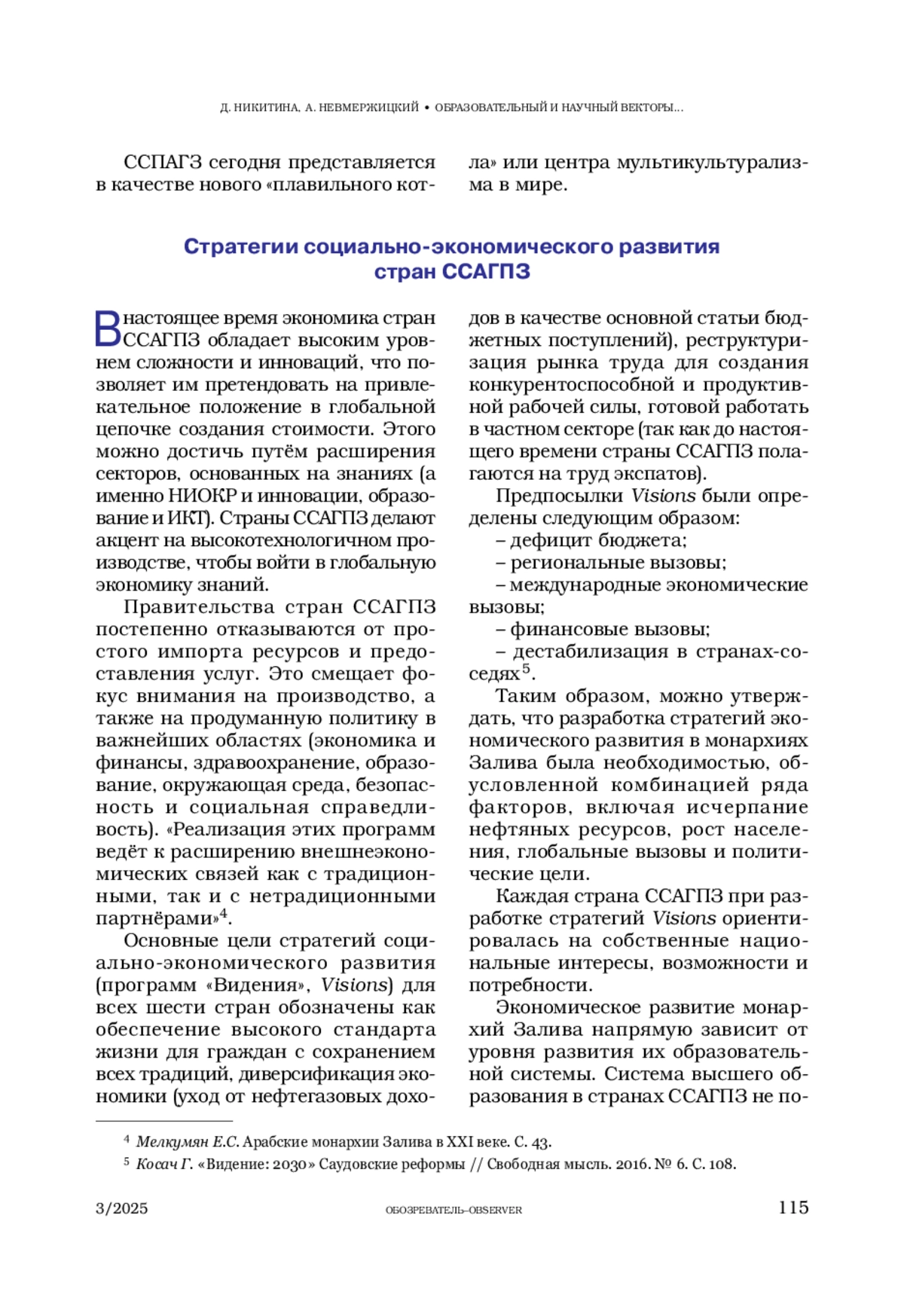 2. Косач Г. «Видение: 2030» Саудовские реформы // Свободная мысль. 2016. № 6. С. 107-124. [Kosach G. «Videnie: 2030» Saudovskie reformy // Svobodnaya mysl’. 2016.№6. S. 107-124]