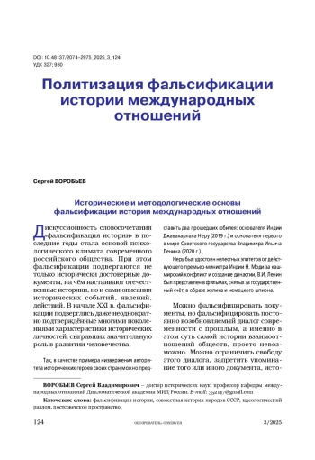 В статье представлена дискурсивная проблематика политизации фальсификации истории международных отношений, увязанная с критическим анализом воспитания молодого поколения постсоветских государств на основе искажённого восприятия международных отношений, формируемого в интересах создания особого социально-психологического климата в постсоветских государствах.