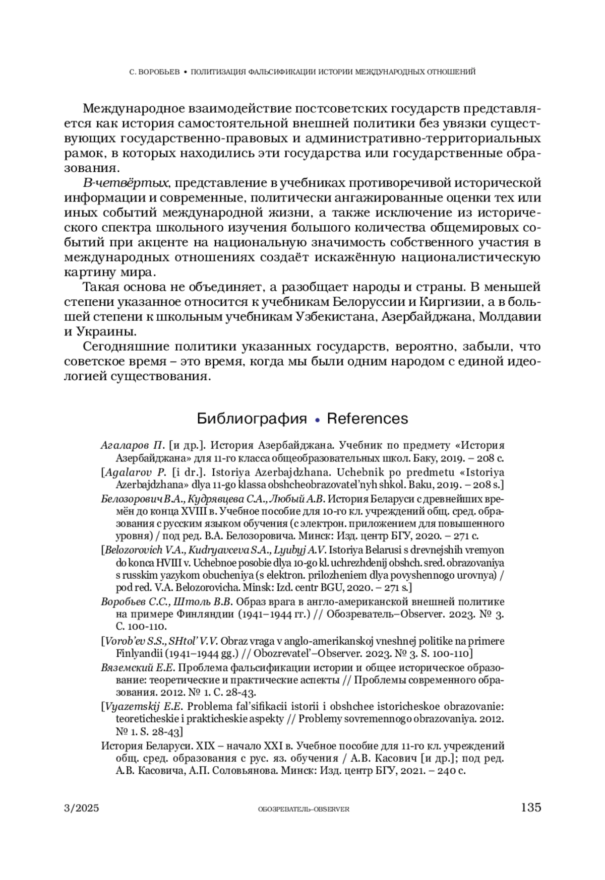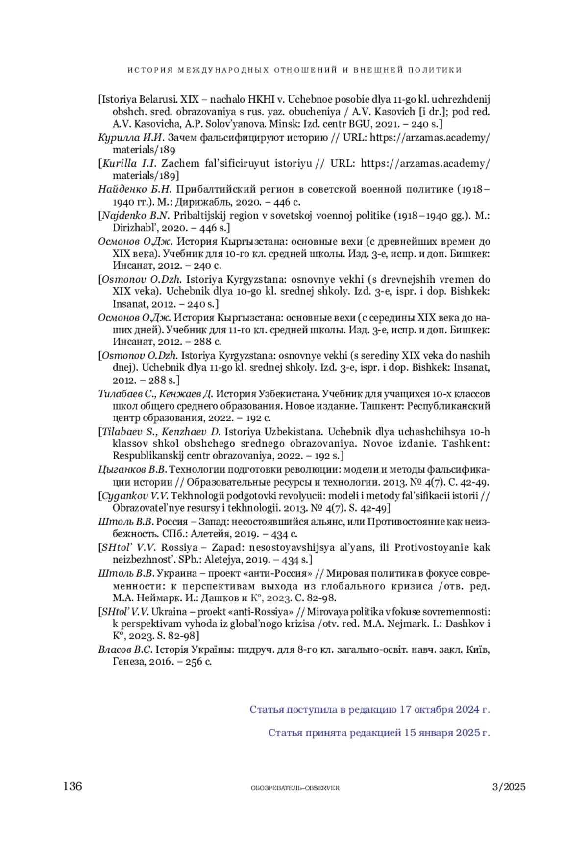 4. Вяземский Е.Е. Проблема фальсификации истории и общее историческое образование: теоретические и практические аспекты // Проблемы современного образования. 2012. № 1. С. 28-43. [Vyazemskij E.E. Problema fal’sifikacii istorii i obshchee istoricheskoe obrazovanie: teoreticheskie i prakticheskie aspekty // Problemy sovremennogo obrazovaniya. 2012. № 1. S. 28-43]