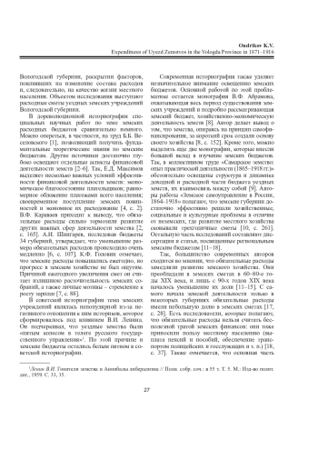 Важной задачей земских учреждений второй половины XIX – начала XX века было формирование земских бюджетов, в которых существенную роль играли расходные статьи, необходимые для обеспечения местных потребностей населения. В настоящий момент одним из неизученных вопросов являются уездные земские расходы Вологодской губернии во второй половине XIX – начале XX ве- ка. В современных условиях особенно актуальным становится обращение к опыту самофинансирования земских учреждений для решения региональных проблем расходования денежных средств.