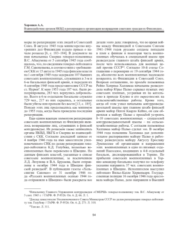 3. Большакова Г.И. Деятельность органов репатриации по возвращению на родину советских граждан и военнопленных из Финляндии в послевоенный период (1944-1953 гг.) // Наука и современность. 2014. No 34. С. 24-29.