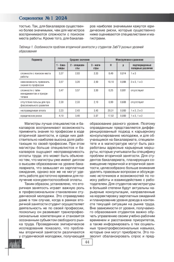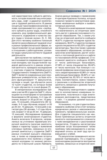 Ключевые фразы: вторичная занятость, студенчество, молодежь, ПРОФЕССИОНАЛЬНОЕ СТАНОВЛЕНИЕ, высшее образование