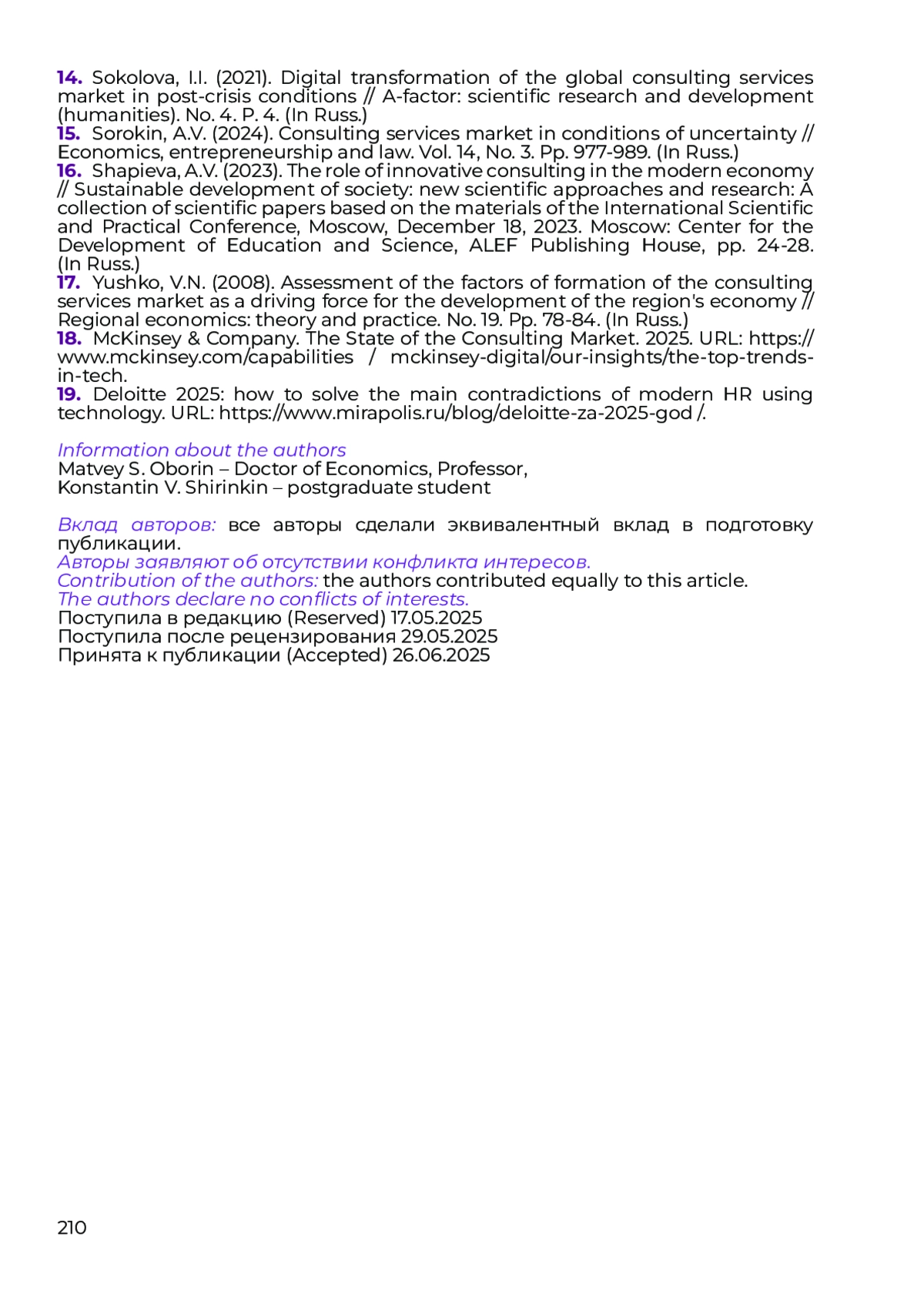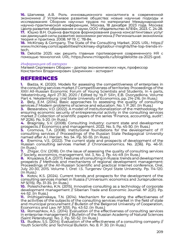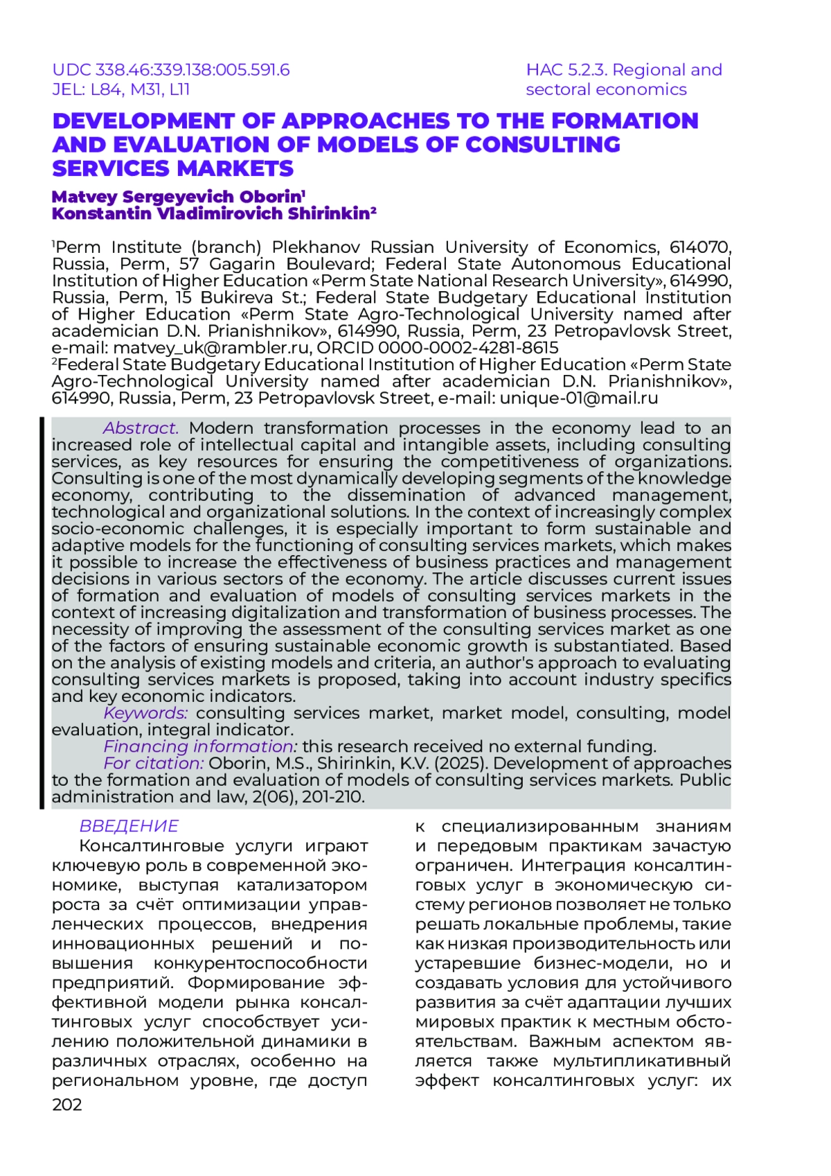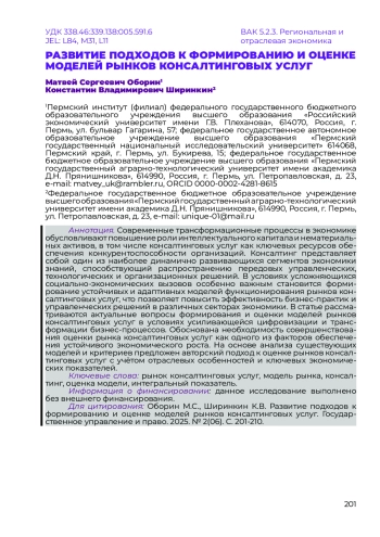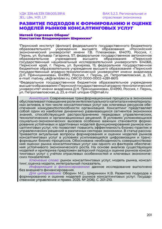 ОБОРИН М. С., ШИРИНКИН К. В. РАЗВИТИЕ ПОДХОДОВ К ФОРМИРОВАНИЮ И ОЦЕНКЕ МОДЕЛЕЙ РЫНКОВ КОНСАЛТИНГОВЫХ УСЛУГ // НАУЧНЫЙ ЖУРНАЛ "ГОСУДАРСТВЕННОЕ УПРАВЛЕНИЕ И ПРАВО". 2025. № 2 (6)