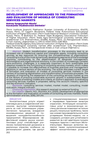 Статья: РАЗВИТИЕ ПОДХОДОВ К ФОРМИРОВАНИЮ И ОЦЕНКЕ МОДЕЛЕЙ РЫНКОВ КОНСАЛТИНГОВЫХ УСЛУГ (2025)