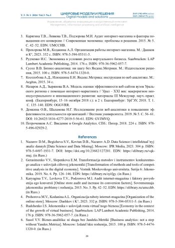 Современный рынок электронной коммерции представляет собой экономическую среду с высоким уровнем конкуренции, поэтому достижение коммерческого успеха на нем во многом зависит от способности торговых организаций анализировать и оптимизировать свою деятельность на основе данных, представляемых сервисами веб-аналитики. В статье освещается значимость веб-аналитики для оценки и улучшения работы интернет-магазина. Рассматриваются возможности, предоставляемые двумя ведущими инструментами в этой области: Google Analytics и «Яндекс Метрика». Основное внимание уделено анализу конверсии, пониманию целевой аудитории и оптимизации маркетинговых усилий. В статье предлагается комплексный подход к использованию веб-аналитики для повышения экономической эффективности и обеспечения устойчивого роста показателей экономической деятельности интернет-магазина