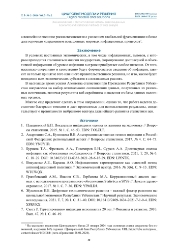 Статья: СТАТИСТИЧЕСКИЙ АНАЛИЗ ИНФЛЯЦИИ В РЕСПУБЛИКЕ УЗБЕКИСТАН: ВЫЗОВЫ И ПУТИ ПРЕОДОЛЕНИЯ (2024)