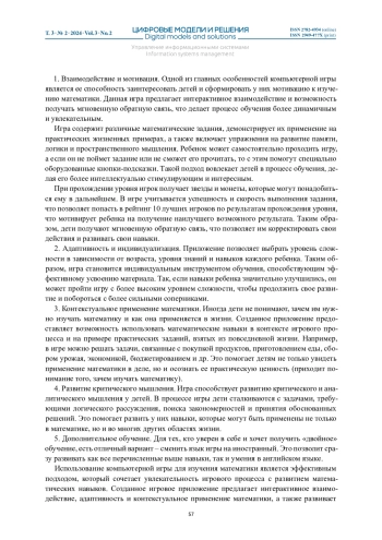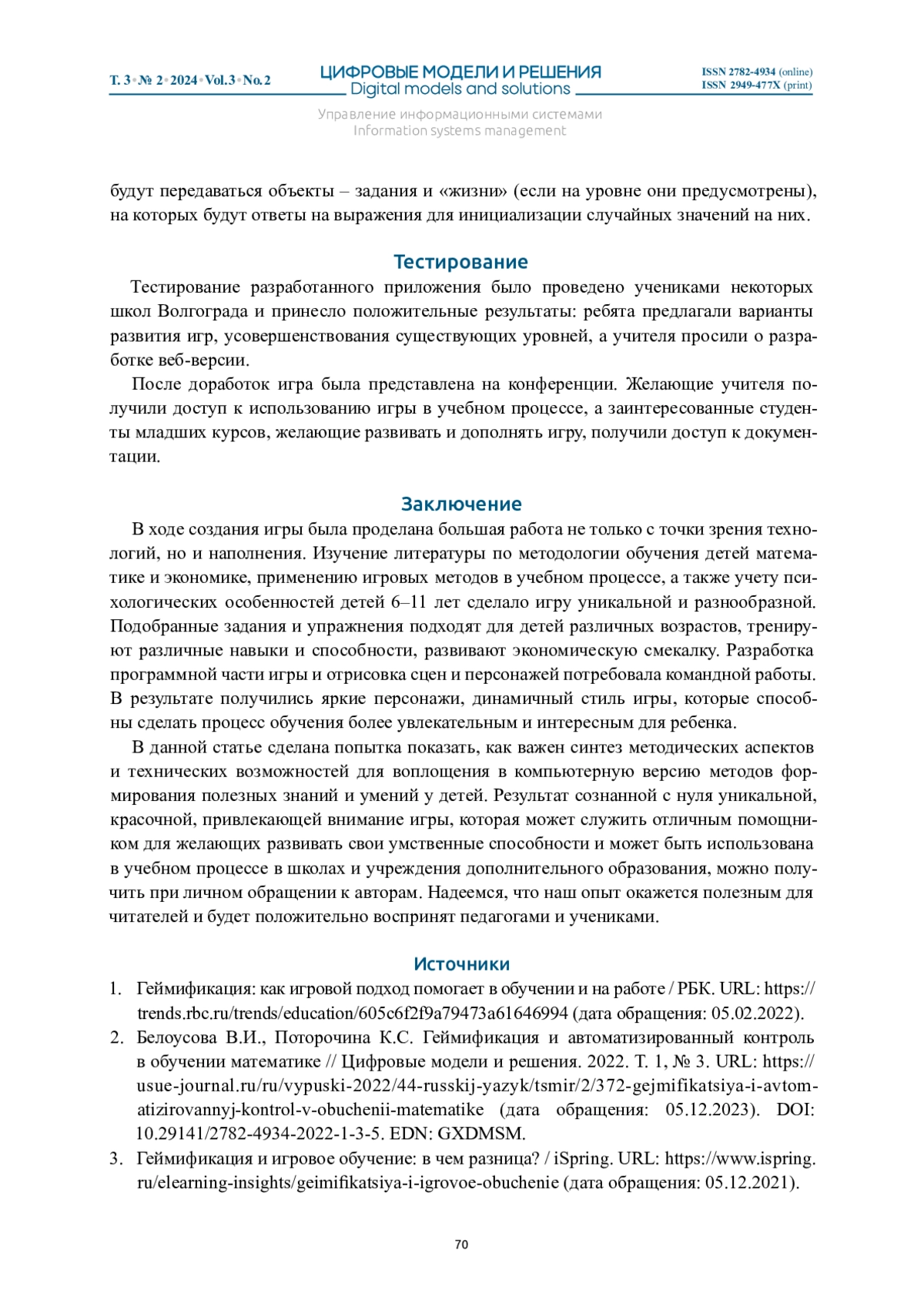 Ключевые фразы: геймификация, автоматизация обучения, математика, ОБРАЗОВАТЕЛЬНЫЕ ТЕХНОЛОГИИ, КОМПЬЮТЕРНАЯ ИГРА, игровые модели, креативное образование, экономическая смекалка