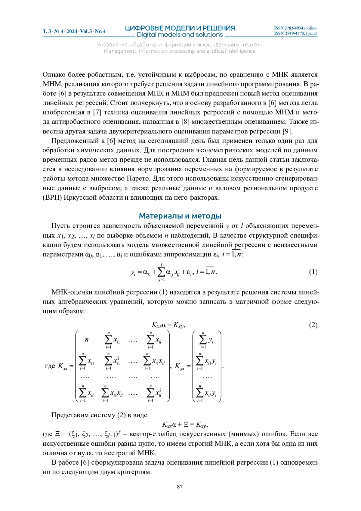 9. Корхин А.С. Оценивание параметров регрессии как многокритериальная задача // Автоматика и телемеханика. 1992. № 9. С. 110-117.