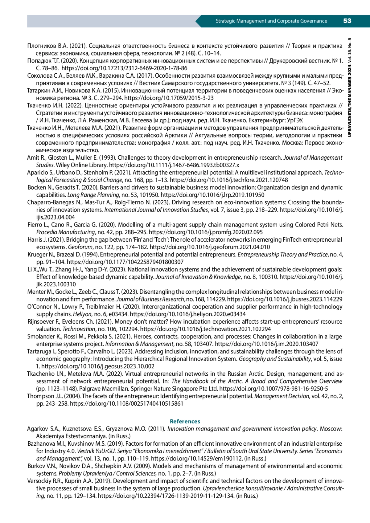 34. Tkachenko I.N., Metelevа M.A. (2022). Virtual entrepreneurial networks in the Russian Arctic. Design, management, and assessment of network entrepreneurial potential. In: The Handbook of the Arctic. A Broad and Comprehensive Overview (pp. 1123-1148). Palgrave Macmillan. Springer Nature Singapore Pte Ltd. DOI: 10.1007/978-981-16-9250-5