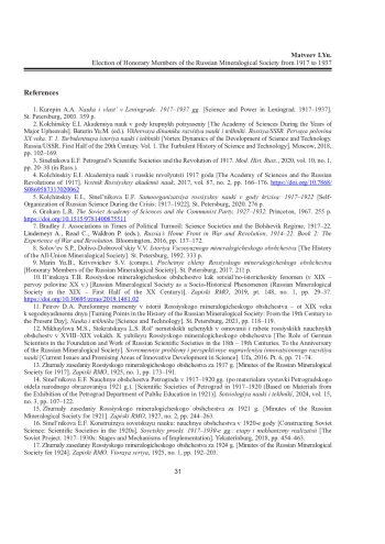 13. Журналы заседаний Российского минералогического общества за 1917 г. // Зап. РМО. 1925. Вып. 1. C. 173-191.
