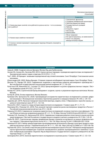 16. Чепелева К.В. (2021). Выбор целевой аудитории при формировании регионального бренда в категории продукты переработки масличных культур // Управленческий учет. № 11-1. С. 160-166. DOI: 10.25806/uu11-12021160-166 EDN: UZTZQI