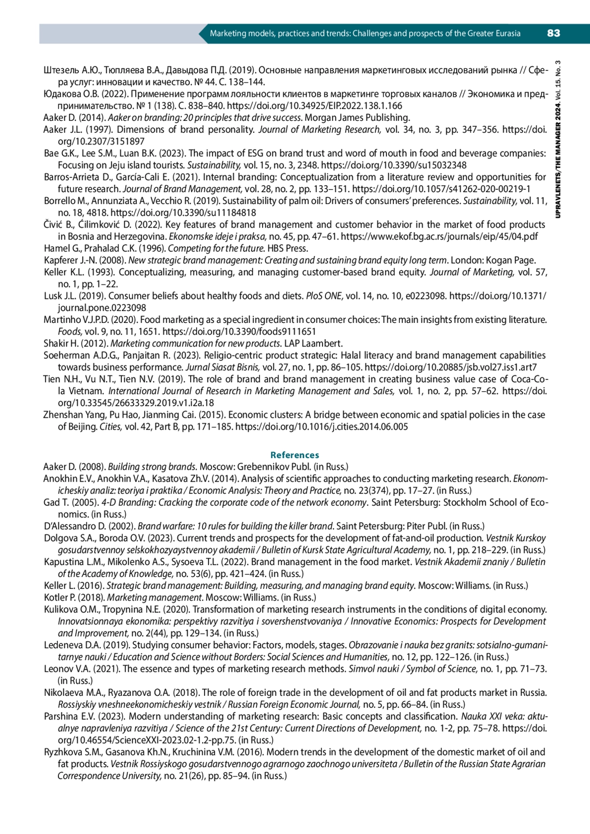 4. Д’алессандро Д.Ф. (2002). Войны брендов. 10 правил создания непобедимой торговой марки. Санкт-Петербург: Питер. Долгова С.А., Борода О.В. (2023). Современные тенденции и перспективы развития масложирового производства.