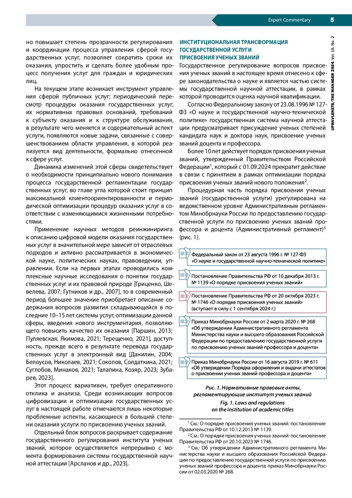 Статья: ПРИСВОЕНИЕ УЧЕНЫХ ЗВАНИЙ КАК ГОСУДАРСТВЕННАЯ УСЛУГА: ОПТИМИЗАЦИЯ АДМИНИСТРАТИВНЫХ ПРОЦЕДУР И ПЕРЕХОД К ЦИФРОВОЙ МОДЕЛИ (2024)