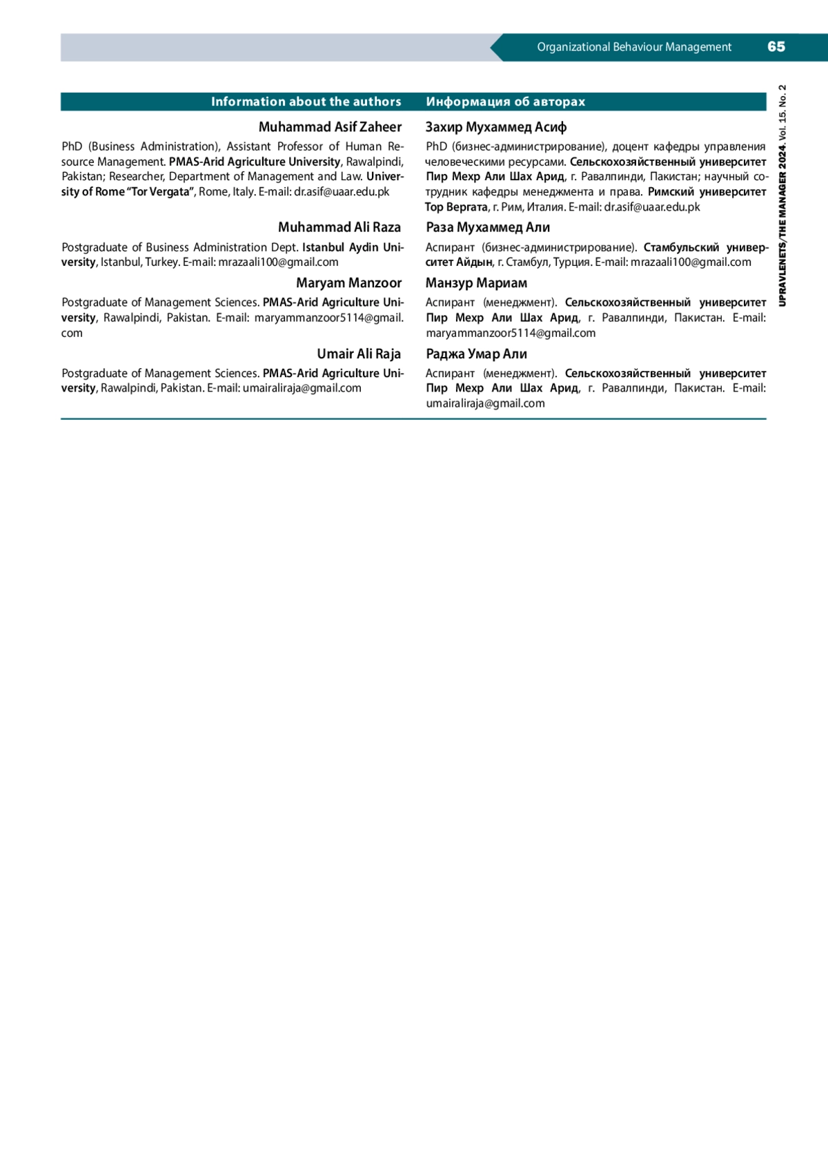 36. Jong J., Ford M. (2020). An exploration of the relationship between autonomy congruence, perceived supervisor individualized consideration, and employee outcomes. Review of Public Personnel Administration, vol. 41, issue 3, pp. 566-592. DOI: 10.1177/0734371X20917185 EDN: JCDGGU